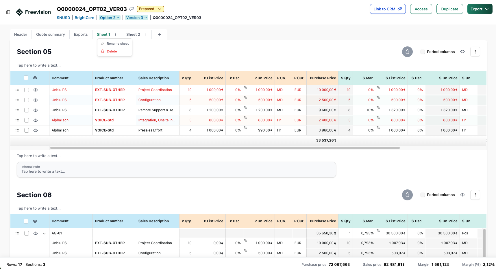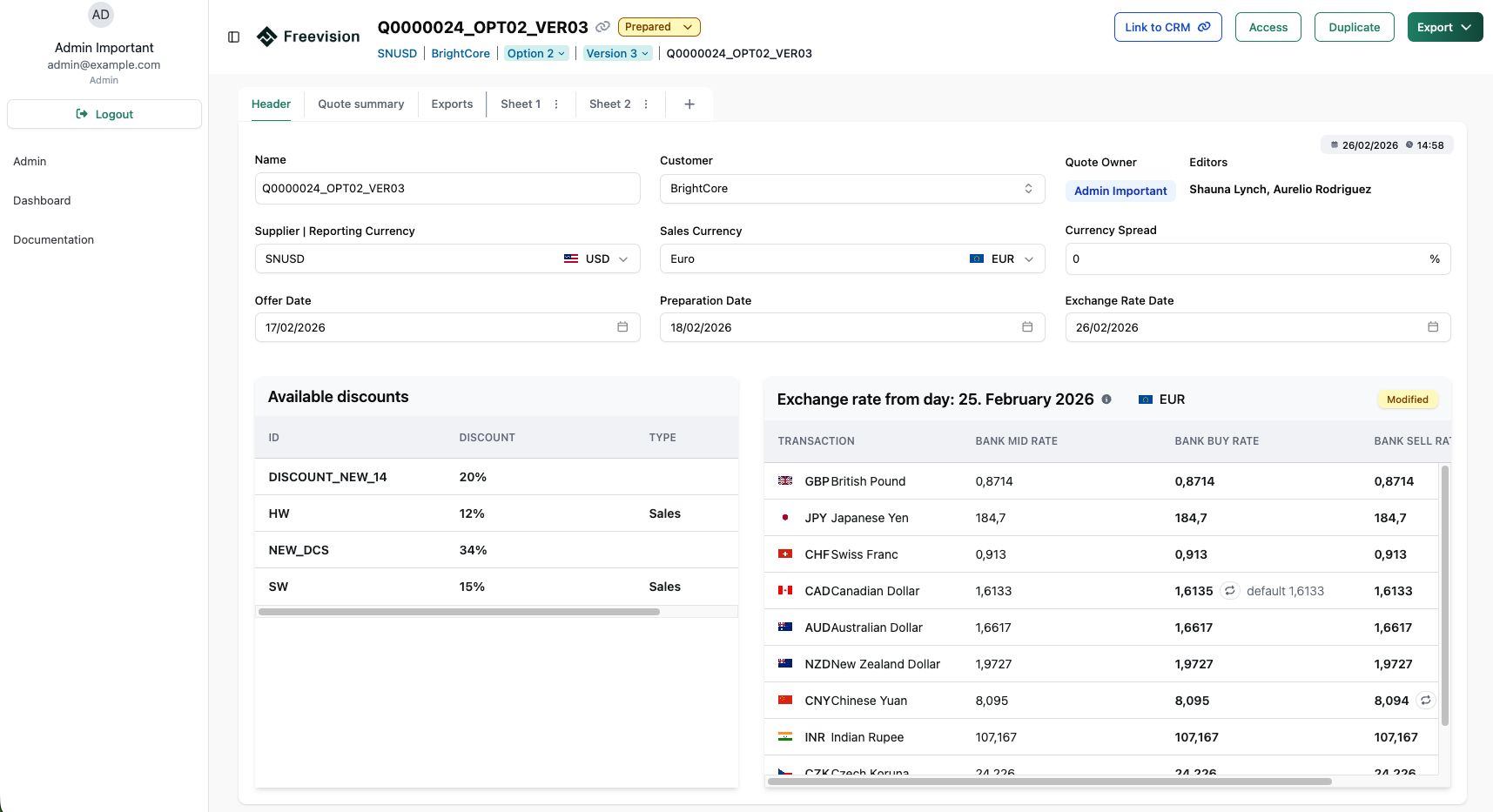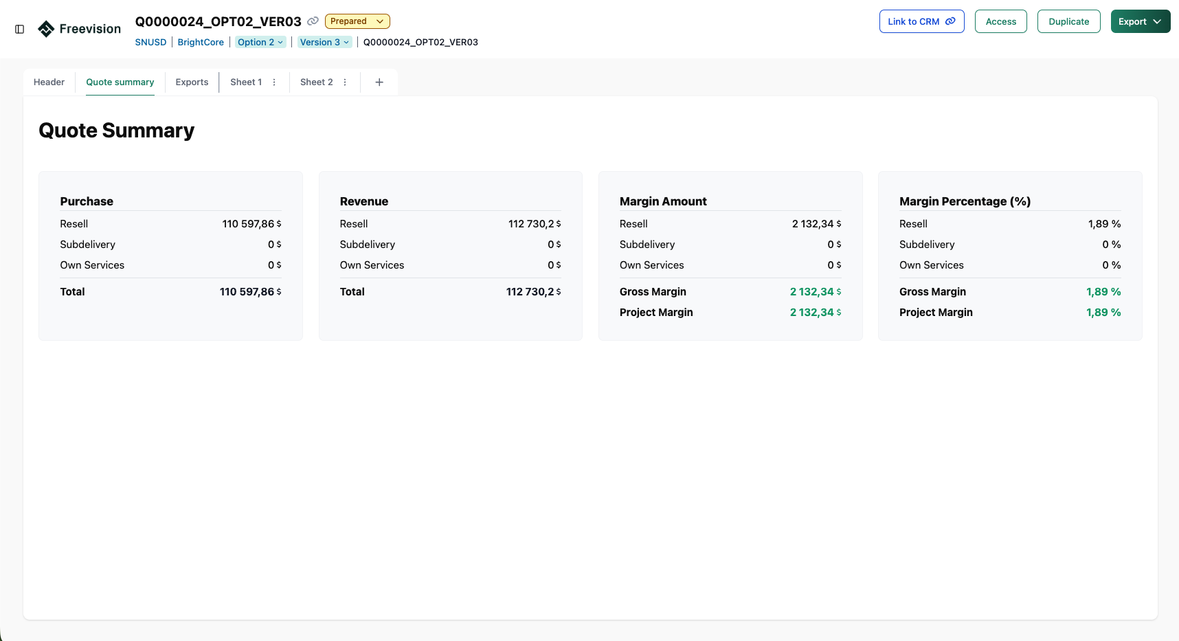 Tímy dnes dokážu pripravovať cenové ponuky rýchlejšie, s menším množstvom chýb a s lepšou spoluprácou. Môžu sa pritom spoľahnúť na presné a automatizované finančné výpočty. Vďaka vstavanému verziovaniu, generovaniu exportov (XLSX a PDF), jasnej štruktúre, prepojeniu na CRM a emailovým notifikáciám pri zmenách stavov či správe prístupov majú celý proces pod kontrolou a prehľadne zdokumentovaný.